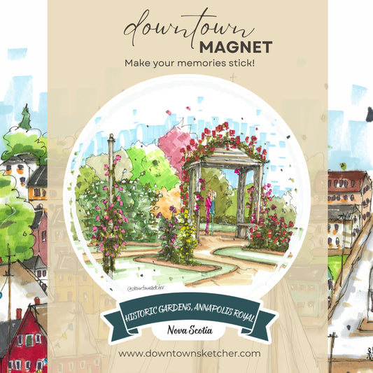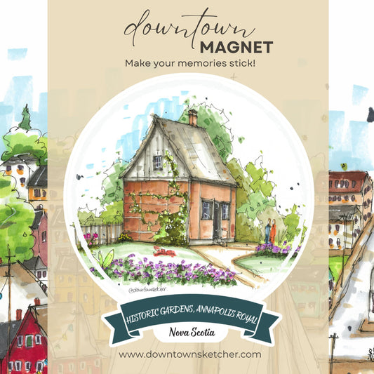 The Downtown Magnet is a captivating piece that brings iconic landmarks to life with rich and vibrant colors. This magnet is a true celebration of the picturesque charm of a Nova Scotia town, capturing its essence in a delightful and cherished memento.