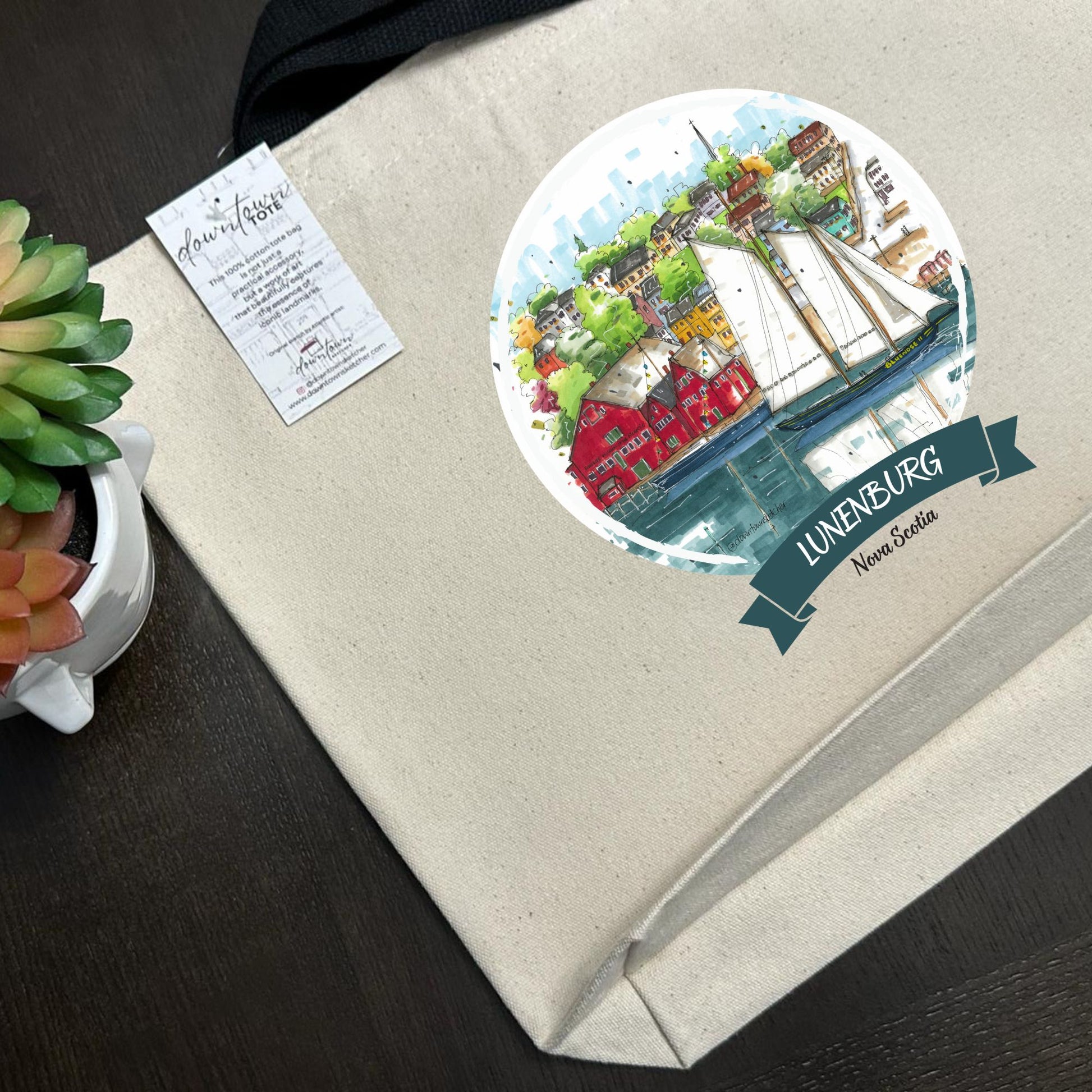 This tote bag is not only a practical accessory but also a piece of "walkable art" that allows you to carry an iconic piece of Nova Scotia's maritime heritage with you wherever you go. The sketch is part of a collection that includes various urban sketches and art prints inspired by different locations, making it a special and personalized item for those who appreciate function, art and travel.