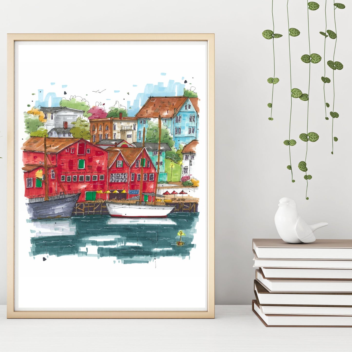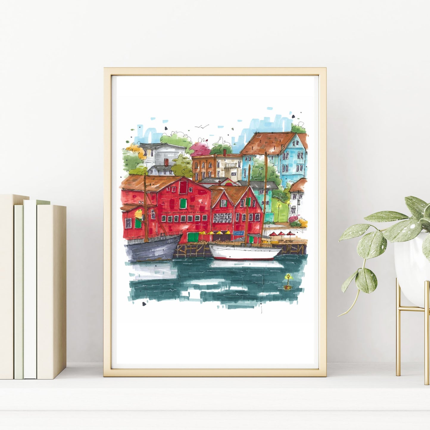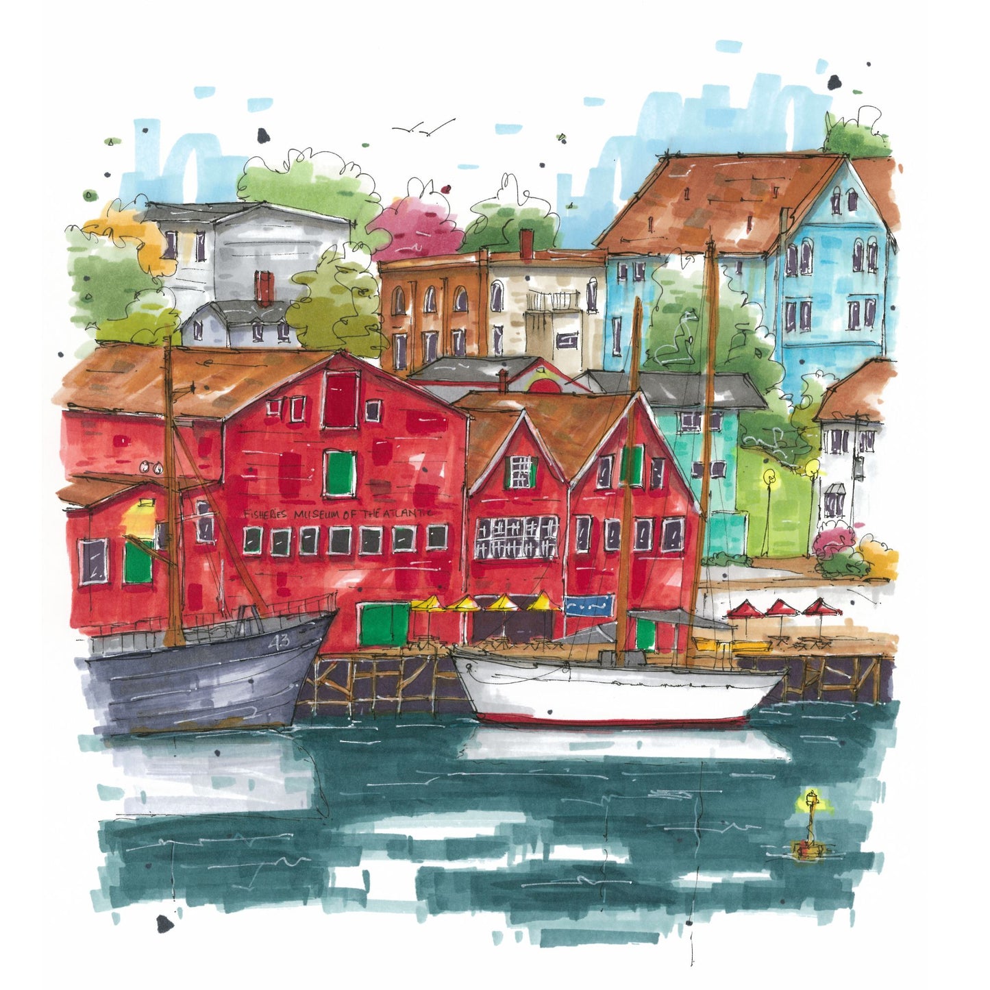 The Fisheries Museum of the Atlantic in Lunenburg, Nova Scotia, is a captivating destination that celebrates the rich maritime heritage of Canada's North Atlantic fishery. This sketch beautifully captures the essence of this historic site, located in a former fish processing plant on the waterfront of the UNESCO World Heritage seaport of Lunenburg.