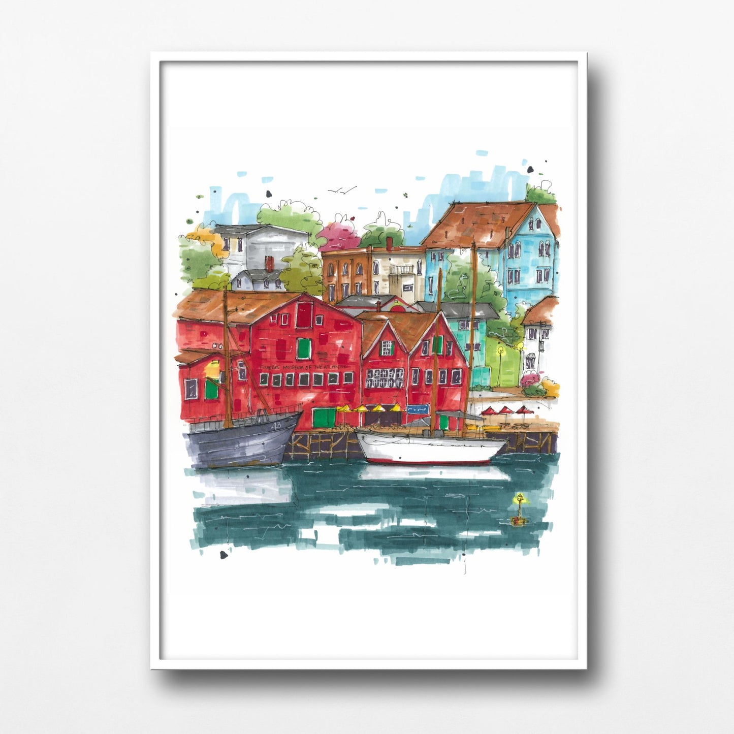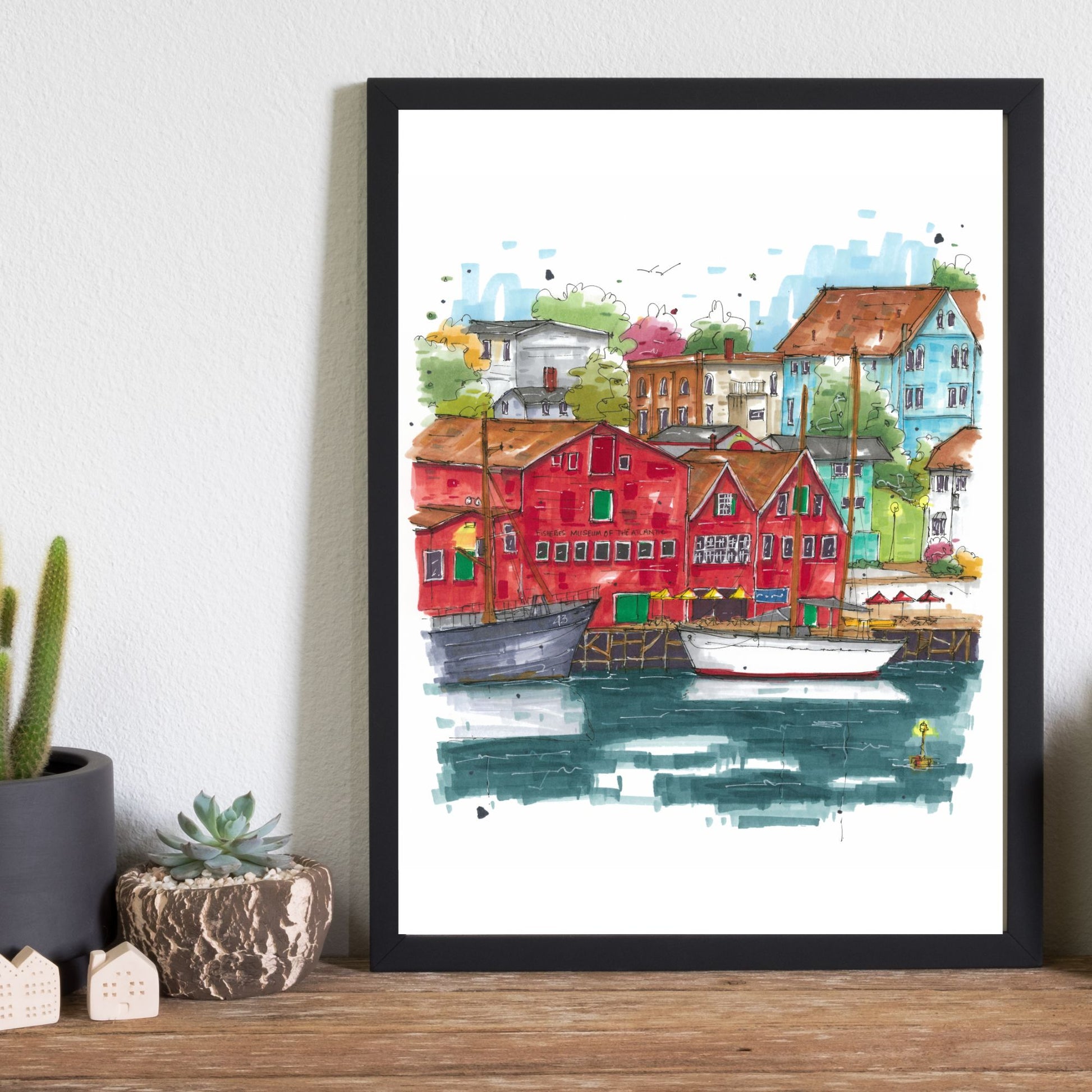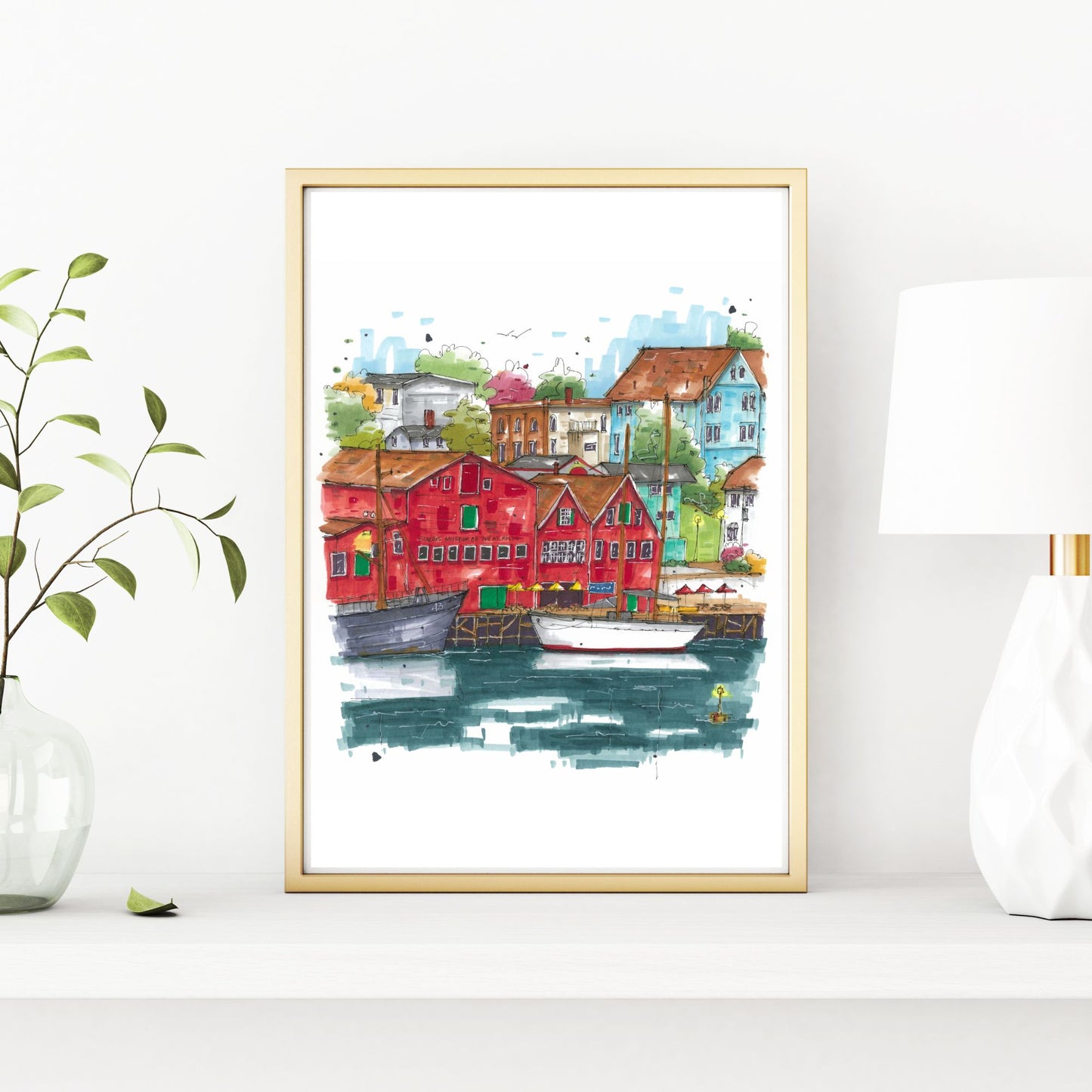 The Fisheries Museum of the Atlantic in Lunenburg, Nova Scotia, is a captivating destination that celebrates the rich maritime heritage of Canada's North Atlantic fishery. This sketch beautifully captures the essence of this historic site, located in a former fish processing plant on the waterfront of the UNESCO World Heritage seaport of Lunenburg.