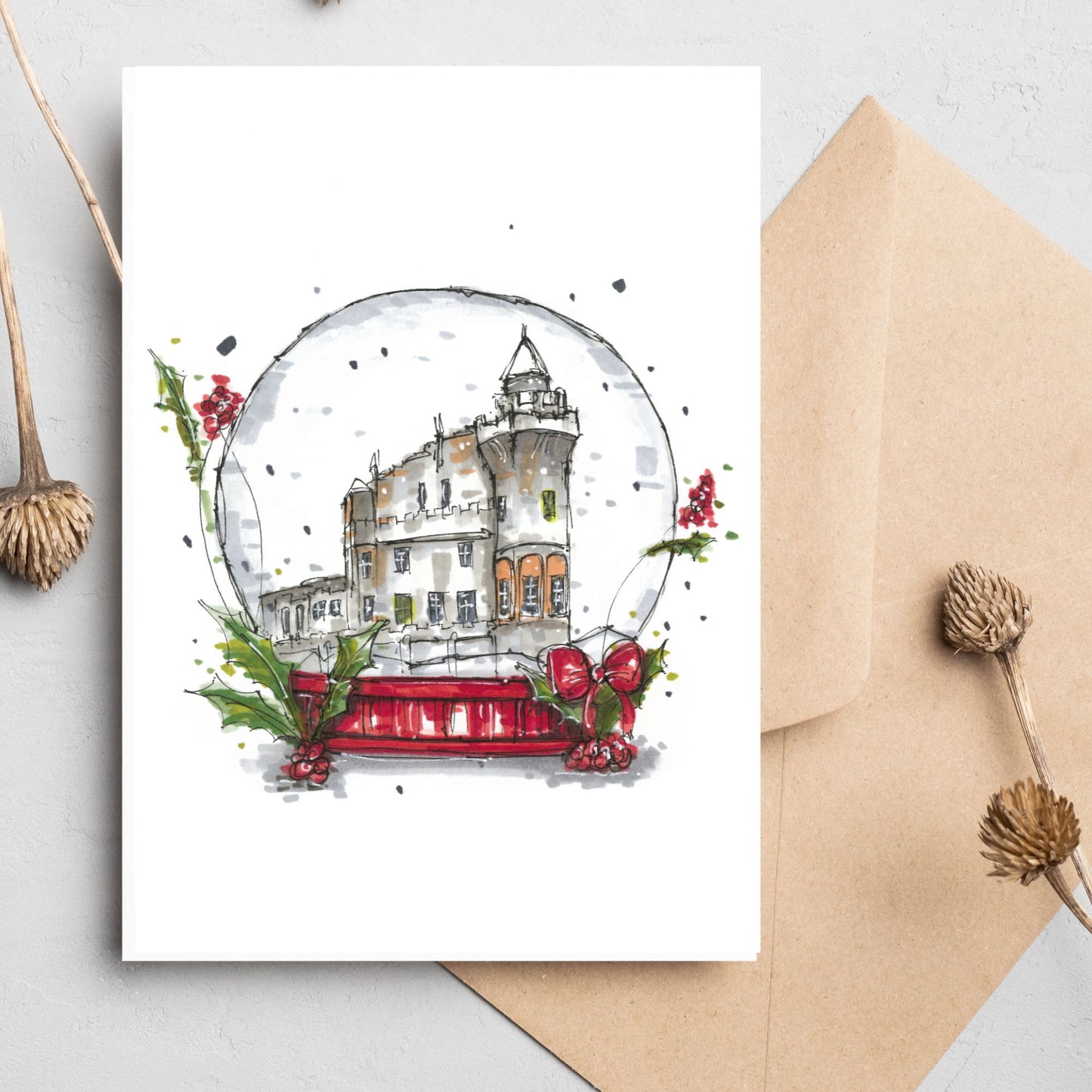 In the sketch, the snow globe encapsulates Casa Loma's enchanting beauty, surrounded by delicate snowflakes that evoke a sense of winter wonder. The castle’s turrets and ornate details are highlighted against a backdrop of swirling snow, creating a cozy and inviting atmosphere. This depiction not only showcases the architectural splendor of Casa Loma but also adds a playful touch that resonates with the joy of Christmas.