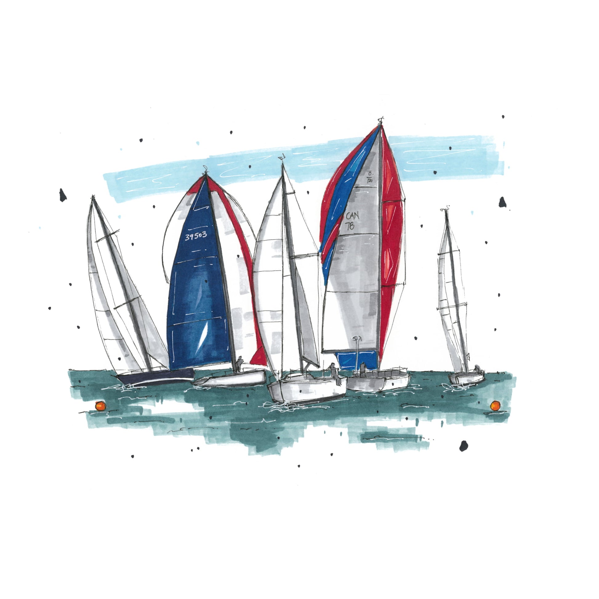 The sketch of Chester Yacht Club by Downtown Sketcher beautifully captures the essence of sailboats in this iconic race.