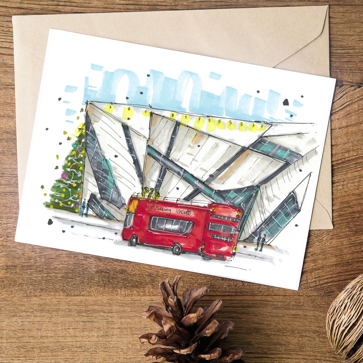In this whimsical sketch, elves are seen joyfully sightseeing on a Sightseeing Toronto bus during the festive Christmas season, passing by the iconic Royal Ontario Museum (ROM). This scene captures the enchanting spirit of the holidays, blending the charm of these mythical creatures with the rich cultural backdrop of one of Toronto's most celebrated landmarks.