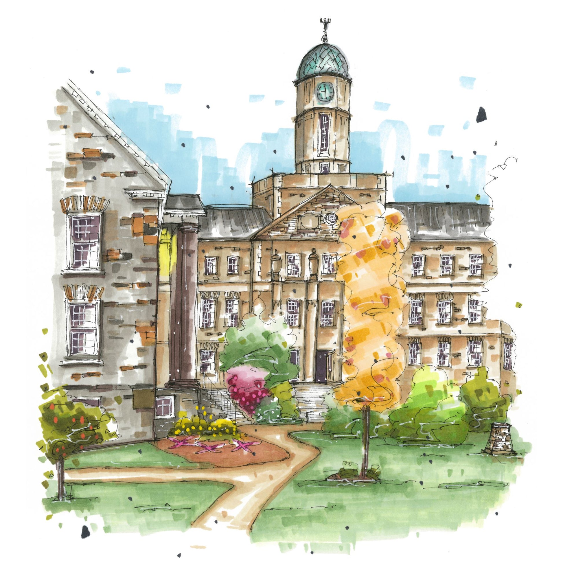 Featuring the impressive Henry Hicks Building, this design reflects the historical significance and beauty of Dalhousie University.