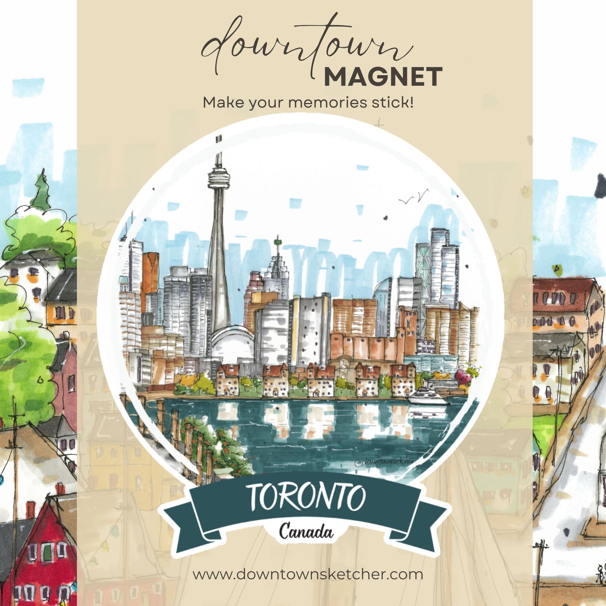 This sketch highlights the balance between nature and city life in Toronto.
