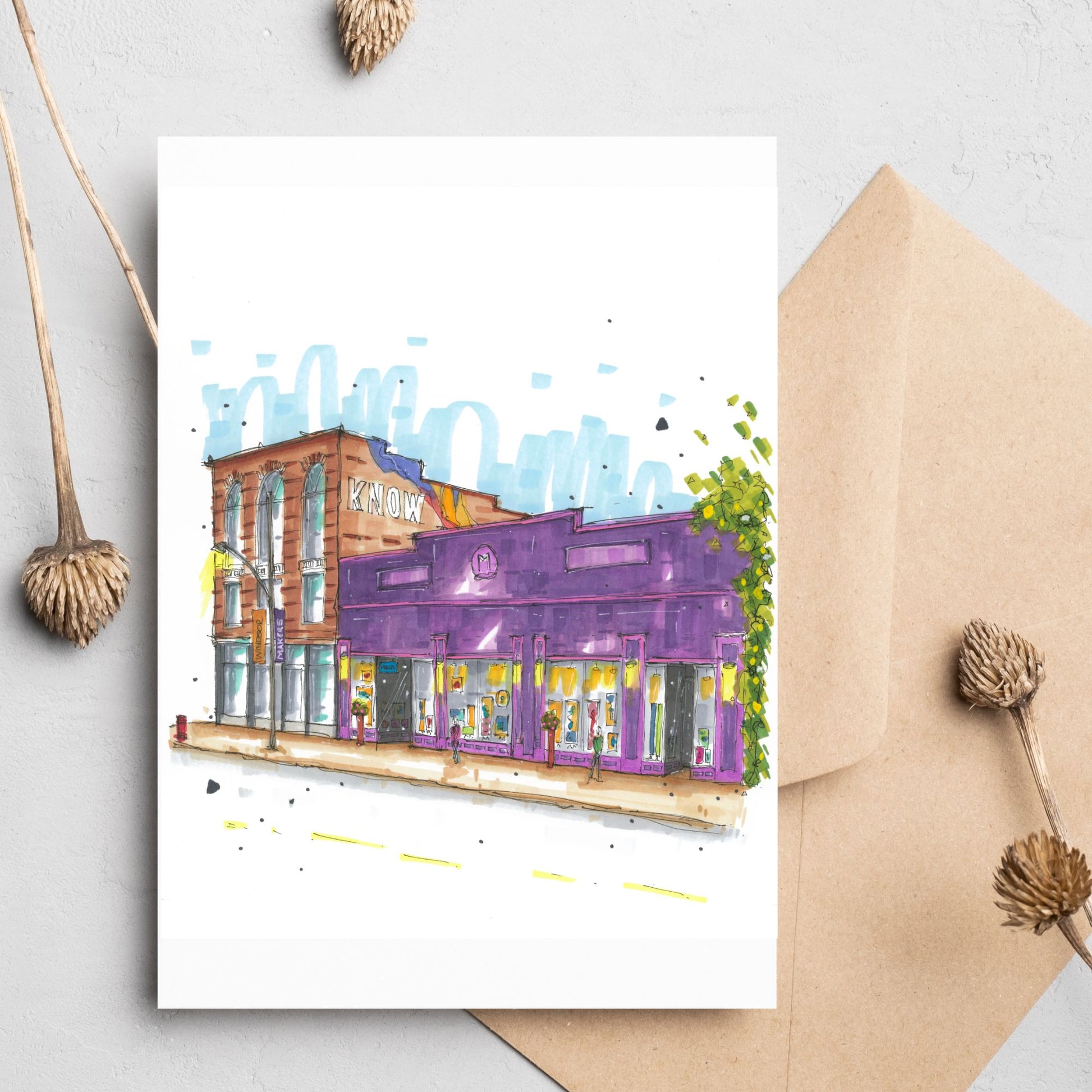 Windsor Makers Studio and Art Market street scene greeting card